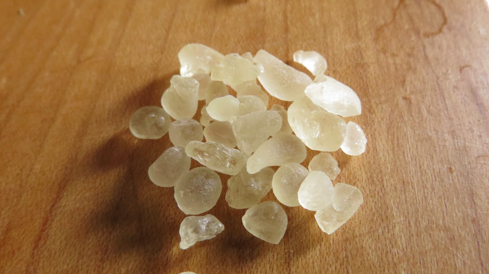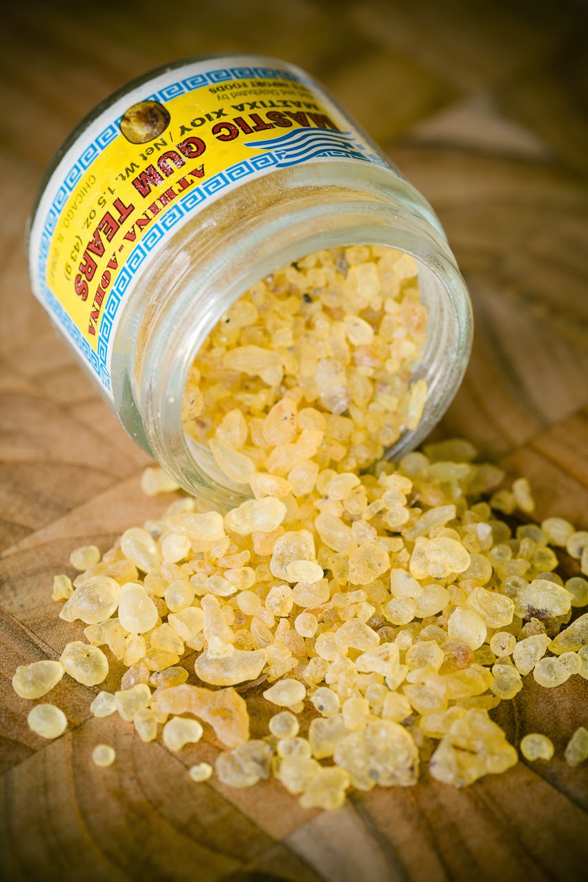 Queste perle giallo-biancastre opache vengono anche chiamate “lacrime di Chios” dal modo in cui trasudano dall’albero e vengono commercializzate nei più differenti modi: Come chewing-gum ecologico, come liquore, addensante…